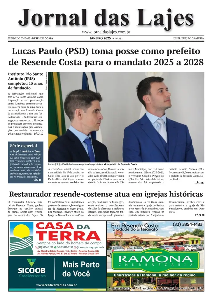 Resende Costa: os destaques de capa da edição de Jan./2025 do Jornal das Lajes