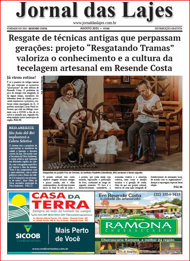 O projeto “Resgatando Tramas” de Resende Costa (MG), Capital Nacional do Artesanato Têxtil, é o principal destaque da edição de agosto do Jornal das Lajes. A iniciativa é um mergulho nas raízes da tecelagem manual, nos processos que antecedem o trabalho no tear e, também, na linguagem própria do tear. Tudo isso marcou as duas […]
