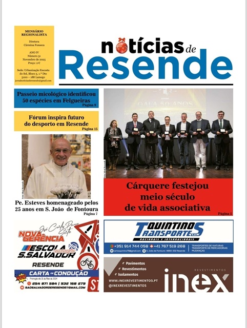 A celebração dos 50 anos do Grupo Cultural e Desportivo de Santa Maria de Cárquere (GCDSMC) é o principal destaque da edição de novembro do jornal Notícias de Resende. A Gala Comemorativa, no dia 22 de novembro, reuniu e homenageou todos os que fizeram e fazem parte da história desta associação, reconhecida como uma das […]